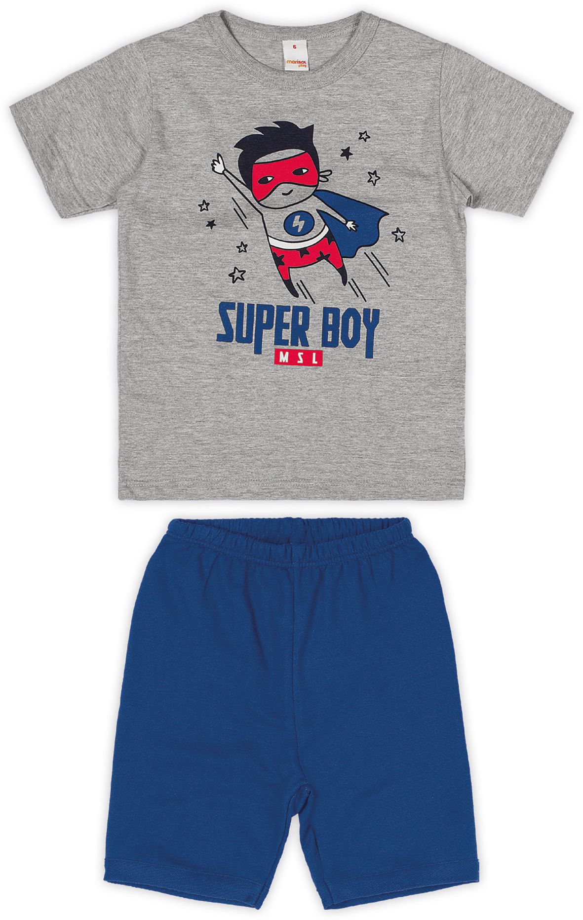 Conjunto Marisol Play composto por uma camiseta produzida em meia malha mescla e modelagem tradicional + bermuda confeccionada em moletom leve sem felpa, com elástico no cós.