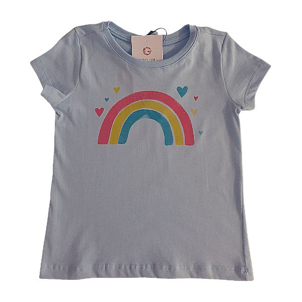 Um arco-íris em aquarela estampa esta t-shirt que é um encanto! Símbolo da esperança, ele não poderia ficar de fora nesta coleção e neste momento que