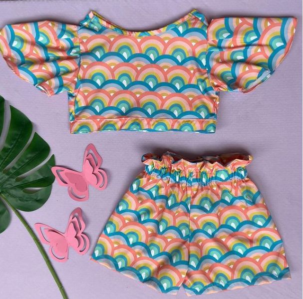 Shortinho Clochard e blusa com amarração nas costas e manguinhas larguinhas.