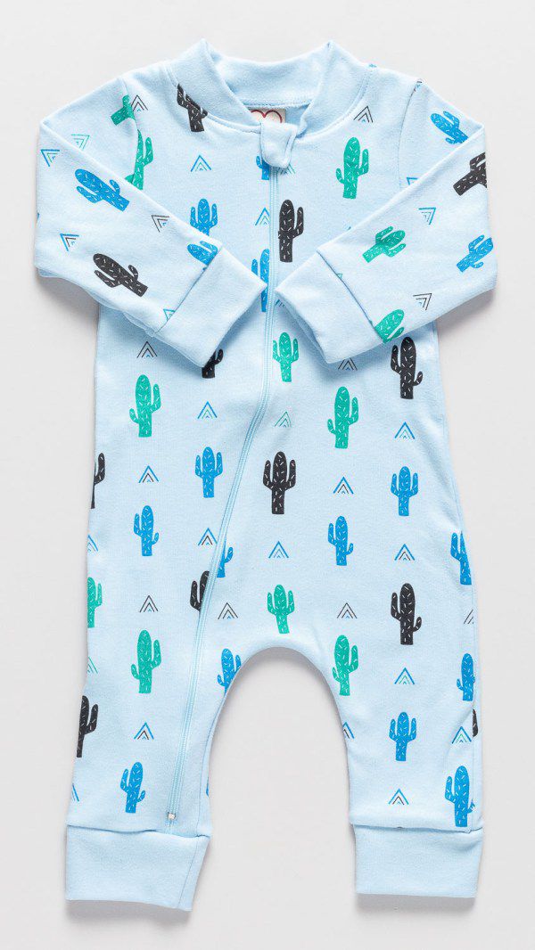 Macacão Bebê Suedine 100% Algodão Marinho Cacto, material super macio e fresquinho proporcionando muito conforto para seu bebê. Com zíper frontal e proteção interna para não ter contato com o zíper na pele do bebê.