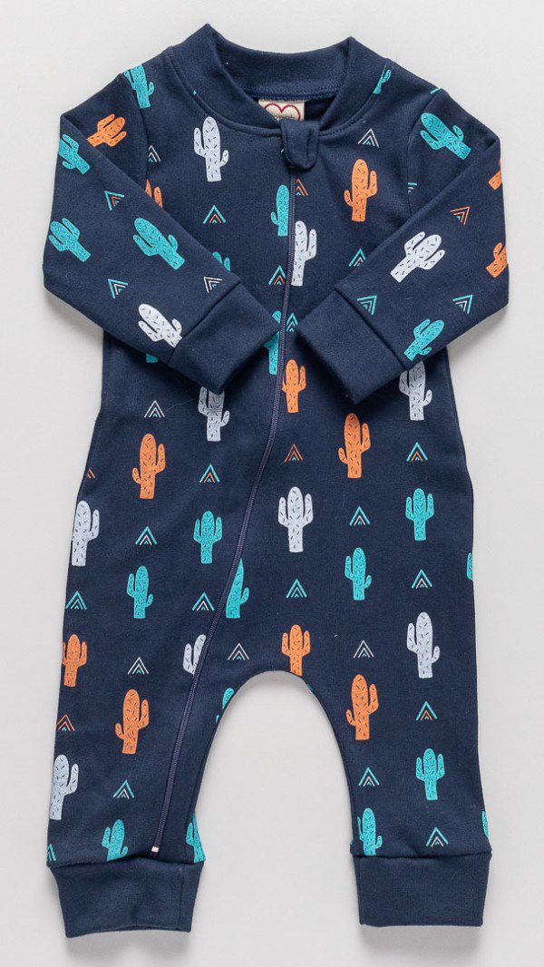 Macacão Bebê Suedine 100% Algodão Marinho Cacto, material super macio e fresquinho proporcionando muito conforto para seu bebê. Com zíper frontal e proteção interna para não ter contato com o zíper na pele do bebê.