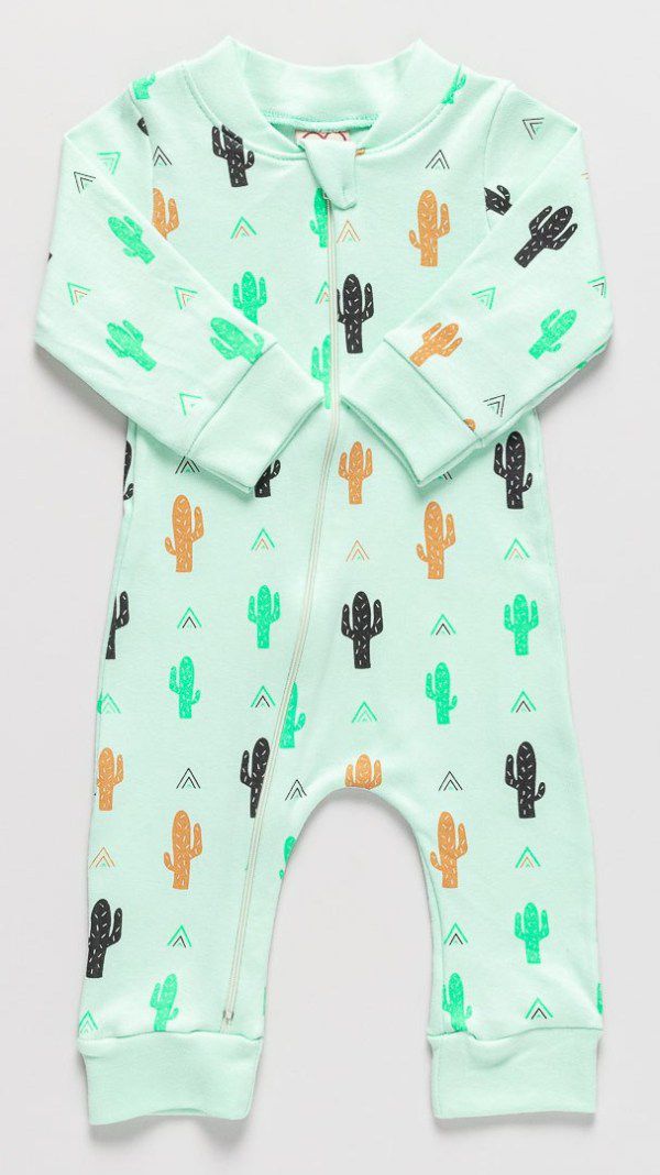 Macacão Bebê Suedine 100% Algodão Verde Claro Cacto, material super macio e fresquinho proporcionando muito conforto para seu bebê. Com zíper frontal e proteção interna para não ter contato com o zíper na pele do bebê.