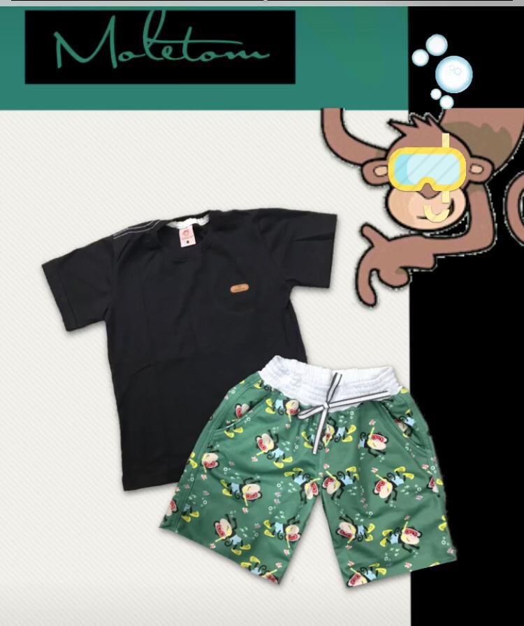Bermuda de moletom verde com estampa de Macaquinhos.