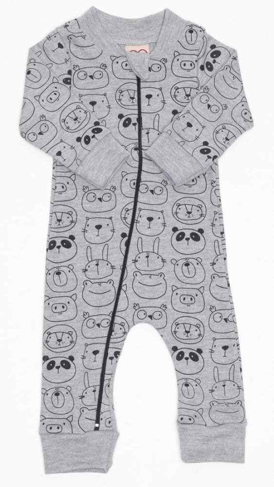 Macacão Bebê Suedine 100% Algodão Panda Gato Mescla, material super macio e fresquinho proporcionando muito conforto para seu bebê. Com zíper frontal e proteção interna para não ter contato com o zíper na pele do bebê.